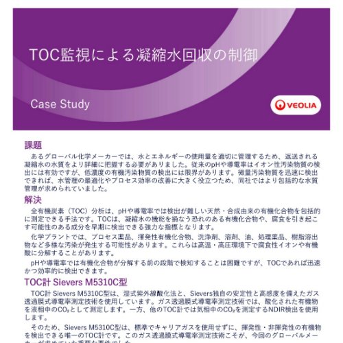 凝縮水回収プロセスにおけるTOC監視の活用事例に関するケーススタディを紹介します。