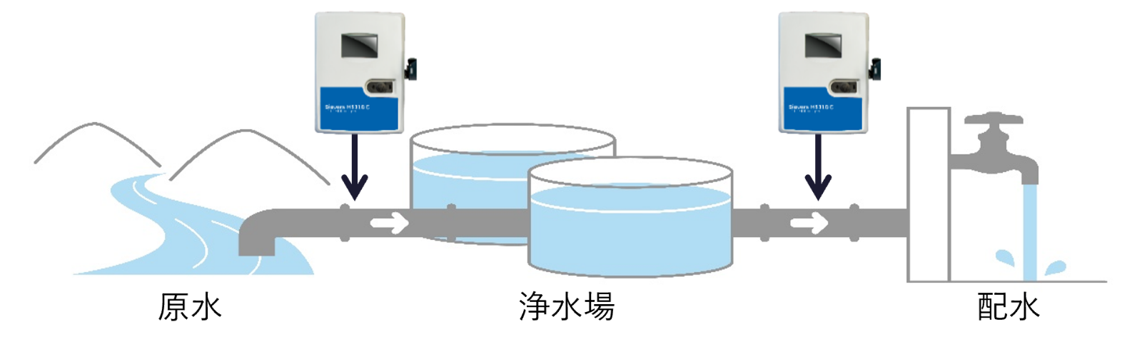 原水水質の急変を迅速検知(例:ゲリラ豪雨、原水事故)